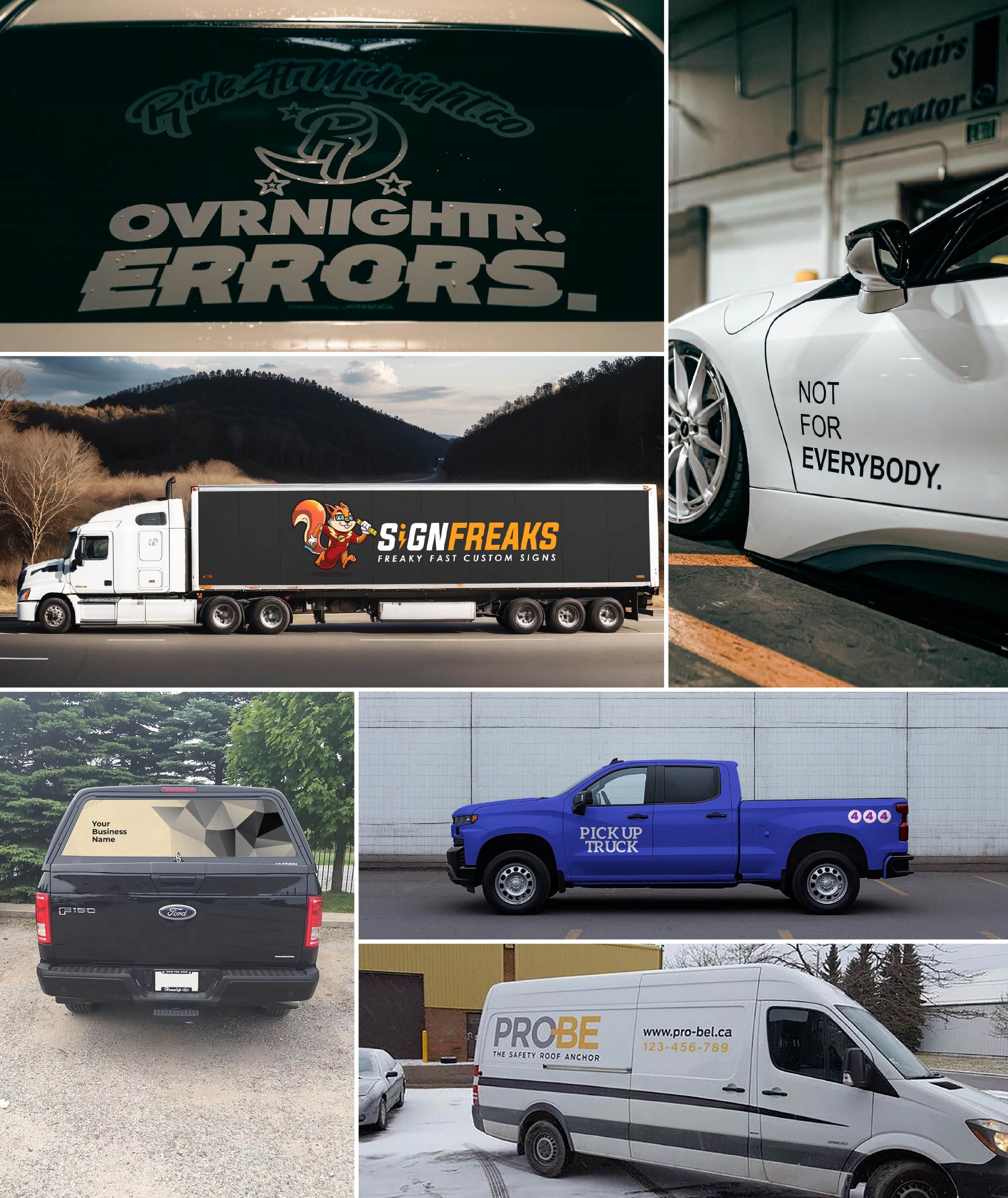 Every time your vehicle sits in Chicago traffic on the I-90, parks outside a job site in Oak Brook, or pulls up to a client's building in Naperville, it's either advertising your business or missing the opportunity to. BannerFreaks prints car decals and vehicle graphics in Chicago for businesses that understand their fleet is moving billboard space they're already paying for — whether it's a single van with clean lettering and a phone number, or a 20-truck fleet wrapped in full-color brand graphics that make people pull out their phones to search your company name at a red light. We offer fleet graphics, car and truck lettering, vehicle magnets for businesses that need flexibility without commitment, perforated vehicle decals for rear windows, and opaque vehicle graphics for maximum visual coverage. A professionally branded vehicle tells every person who sees it exactly who you are, what you do, and how to reach you — without a single dollar spent on ad placement, targeting, or monthly fees.