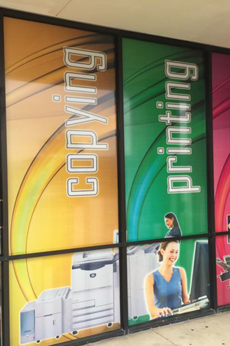 Banners, wraps, wall graphics, window decals, business cards, flyers, and postcards — all printed in-house